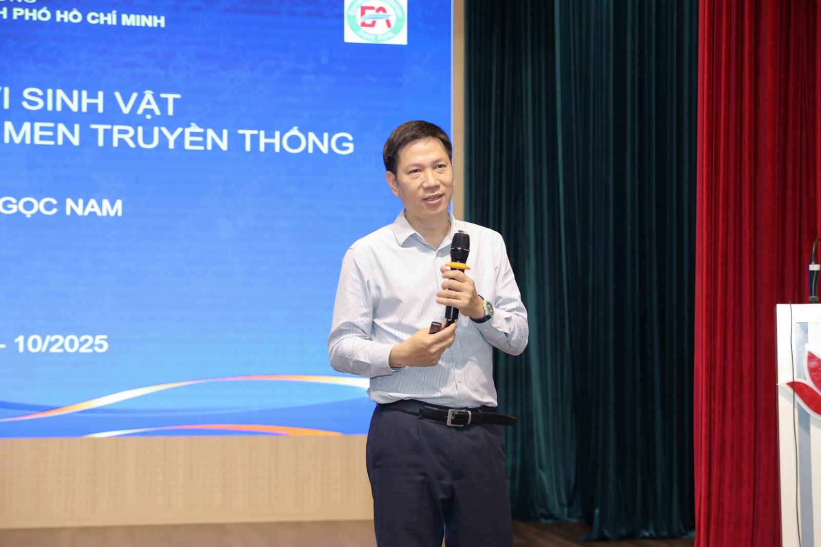 Trong khuôn khổ chương trình, PGS.TS. Trịnh Ngọc Nam đã chia sẻ những kết quả nghiên cứu mới nhất về đa dạng vi sinh vật trong các loại thực phẩm lên men truyền thống của Việt Nam, cũng như tiềm năng ứng dụng của chúng trong phát triển sản phẩm thực phẩm chức năng, bảo tồn nguồn vi sinh bản địa và hướng tới các giải pháp phát triển bền vững trong công nghiệp thực phẩm.