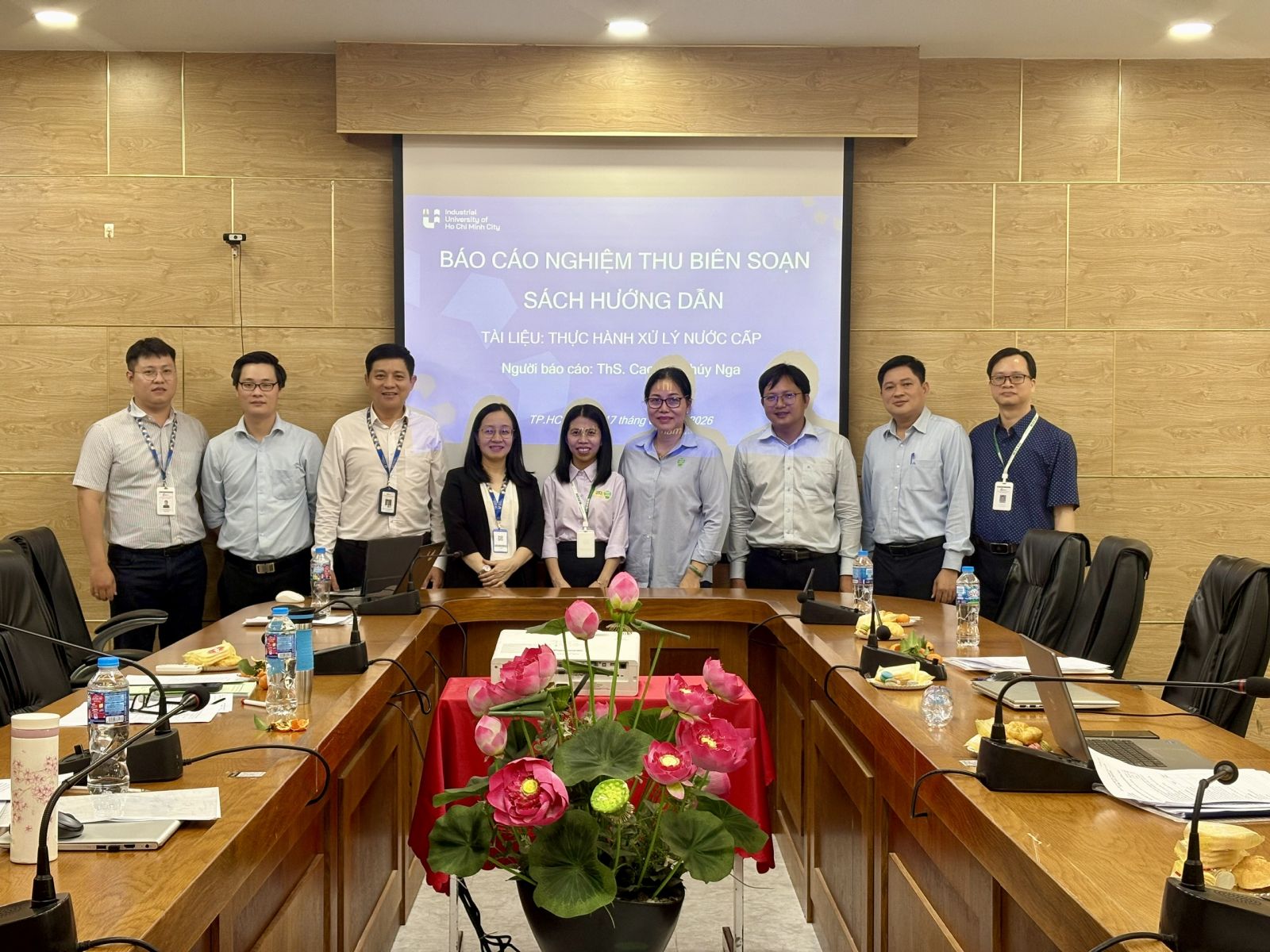 Vào lúc 14 giờ 30 ngày 17 tháng 01 năm 2026, tại phòng họp Nghiên cứu 3, Trường Đại học Công nghiệp Thành phố Hồ Chí Minh đã diễn ra buổi họp thẩm định sách hướng dẫn Thực hành Xử lý nước cấp, Chủ biên ThS. Cao Thị Thúy Nga.